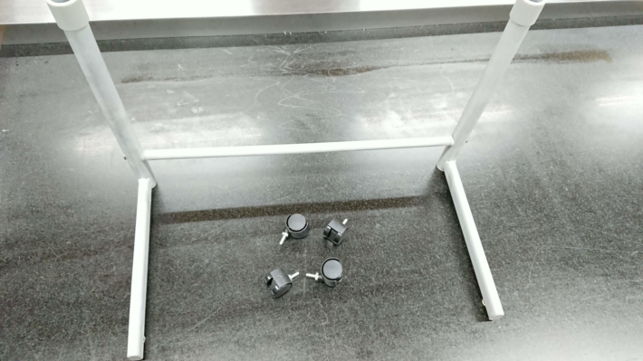 組み立ててみると、少しひっくり返りやすいかなって印象です。キャスターの間隔がせまい気がします。