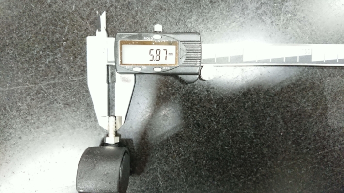 キャスターのネジを測定して、開ける穴をどうするか考えます。