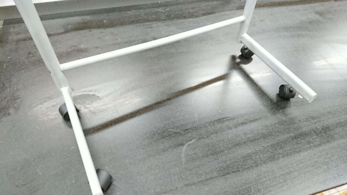 プリンター台をバラバラにして、木製のパーツは汚れないところに置いておきます。