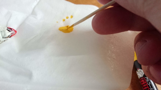 ティッシュにガンダムマーカーをたらして、つまようじにつけてちょいちょい塗る