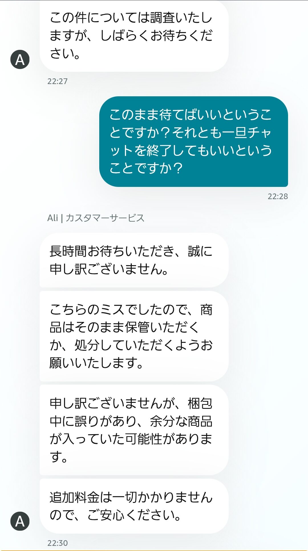 約10,000円の物が3個も多くきてしまってビビりましたが、そちらで処分してくれとのこと。