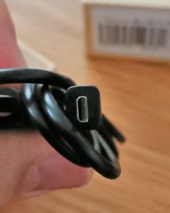 すこし気になったのは、USBの端子、なんか見たことあるようなないような、とりあえず、うちにあるどの端子ともあいません。