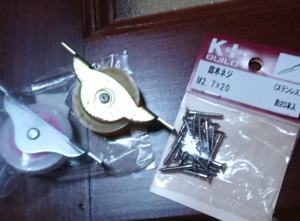 車輪は『戸車』(とぐるま)というらしいです。ホームセンターのおばさんに、はずしたパーツを見せて、これくださいって言った甲斐がありました。