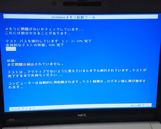時間かけて超しっかり調べる方法もあるらしいですが、1枚あたり一晩くらいかかるらしいんで、Windows標準のメモリチェックでいきます。