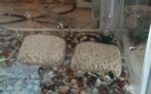金魚水槽が生臭いのでバクテリアの宿った石を水槽に入れてみました