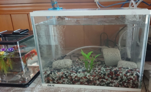 水槽を立ち上げてから数日は金魚を入れないほうがいいってなにかで見たんで、三日くらい水を循環させてから金魚いれます。