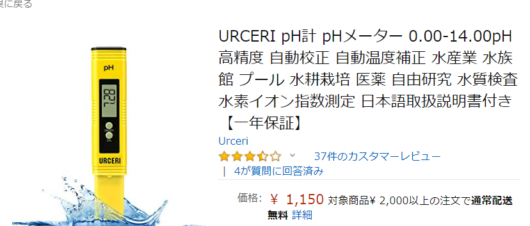 近所のホームセンターでは、紙タイプのリトマス試験紙みたいなのしか売ってなかったんで、繰り返し使えるこちらにしました。