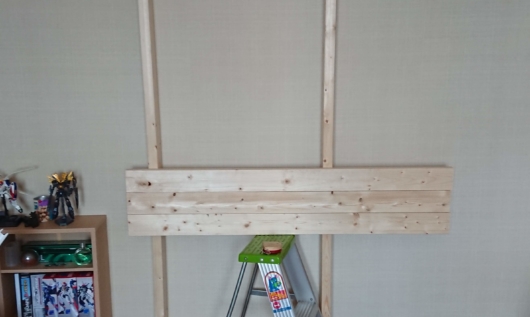 棚板としての既製品が多くあるので、板を手に取って長さを考えました。