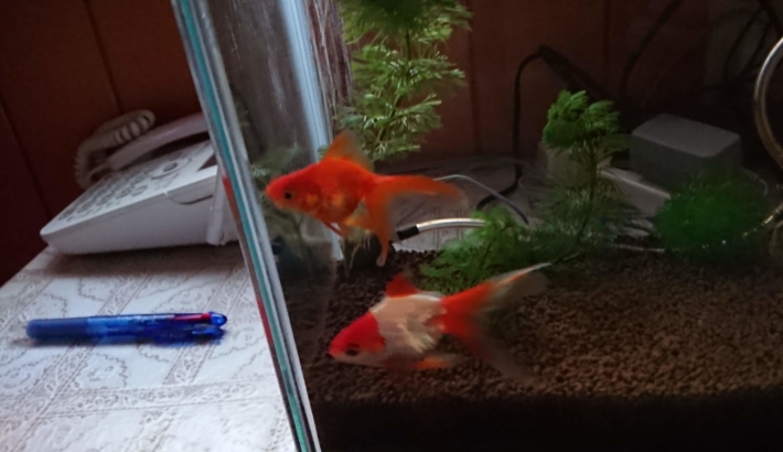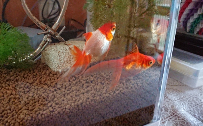 今日は夜の勤務なので、こども達を幼稚園と児童館に送り届けてから金魚を眺めようと水槽の前に来ました。