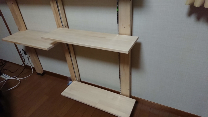 残りは高さ調整用の金具に、切断してきた棚板を固定して終わりです。