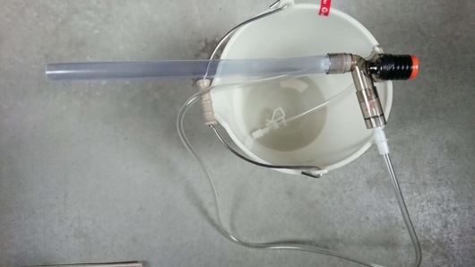 排水のホースはバケツに固定できるので、ウンコすくいに集中できます。
