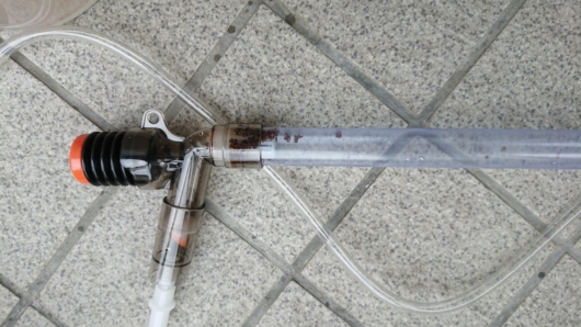 ぼやけてますが、うんこと一緒にブルカミアも吸い上げてしまい詰まってしまいました。