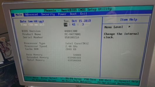 やり方は、メーカーのロゴが出ているときにF2とか連打です。