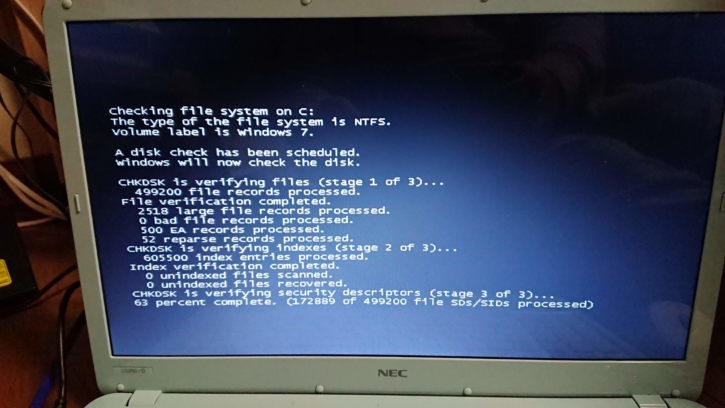 そしてPCを再起動させ、NECのロゴ画面でF7連打します。