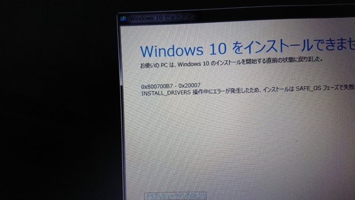 ここから難なくWindows7からWindows10にアップグレード出来ると思っていたら、ここからもうまくいかない非常事態に陥りました。