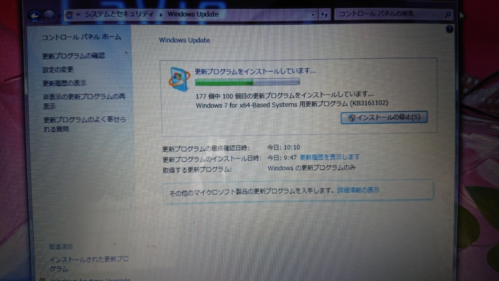 windows7をWindows10にアップグレードするには、「Windows7 sp1」にしないといけないので「windows update」しまくります。