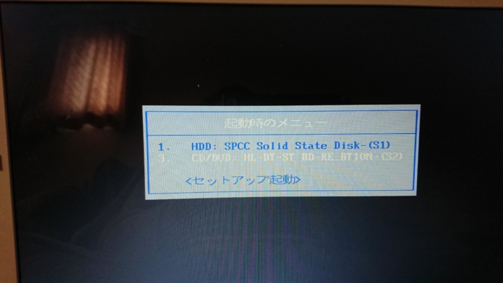 もちろんさっき作成したUSBメモリから起動するように指定します