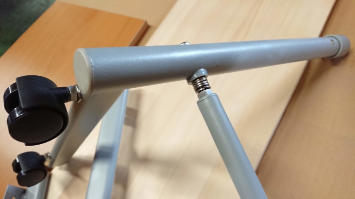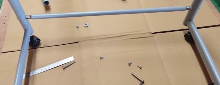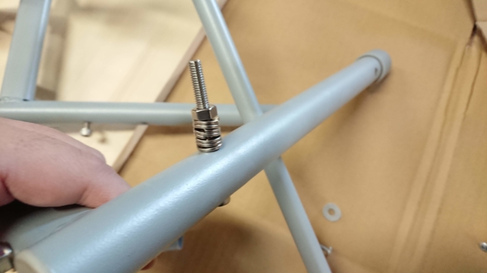横にながくなるんで、中間の棒も少し延長するため、ワッシャーをかませて延長しました。ナットで固定しています。これを両サイドやります。