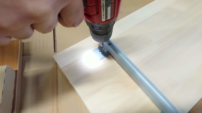 ざっくり位置合わせたら、電ドリでドリドリと