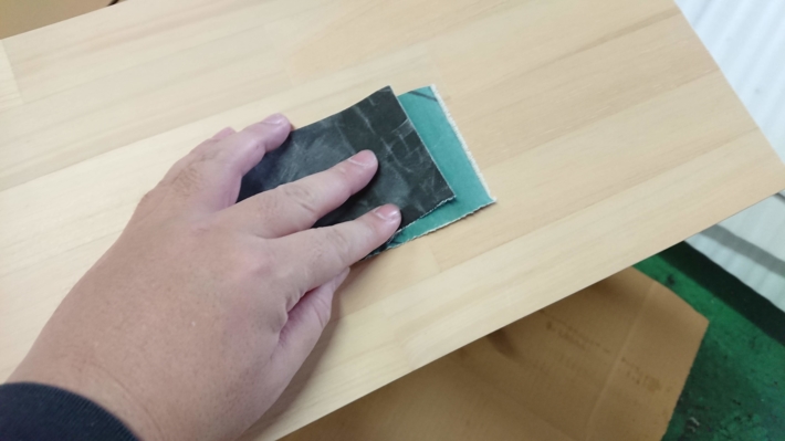 使い古しでもいいから、こすったほうがすごくいい感じになります。ニスを塗るのもいいかもしれませんが、サラサラ感がほしいので紙やすりです。ニスなんて家にありませんし。