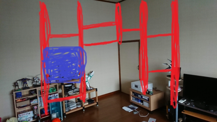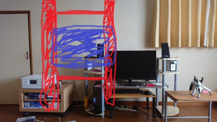 それにPCの配線などが邪魔で、置きたいとこに柱置けません。