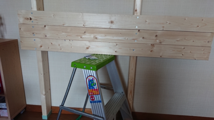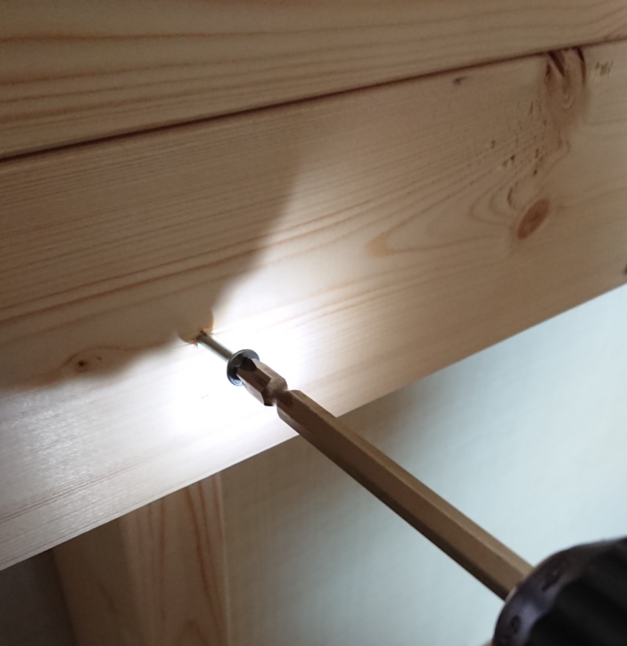 「グッと」言われても大工さんのような力はないので下の棚は固定ということにします。