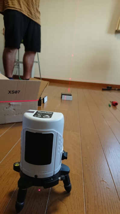 固定するためにスケールで寸法を計り、鉛筆で印をつけ、そしてビス止めです。