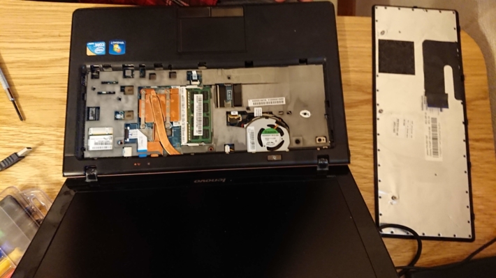 そして、なんといってもHDDのはずし方がややこしく、キーボードまで外さないといけないめんどくさいタイプでした。