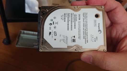 この余っていて使いづらいPS3初期型の20ギガのHDDを使用します。PS3にCFW導入したいんで試行錯誤しながらHDD取り替えます