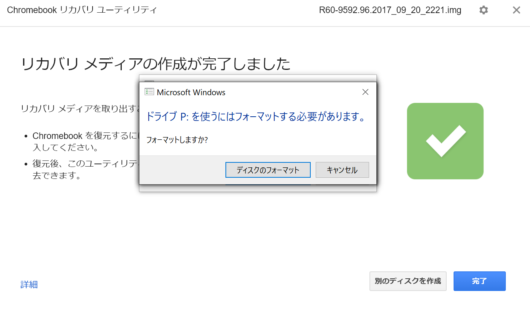 作成が終わったら『フォーマット必要ラッシュ』がきます。すべてキャンセルでいいんです。