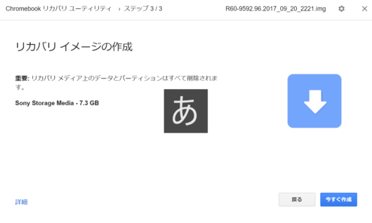 これをメインPCにつないで、USBにやったように「リカバリイメージ」を作成します。