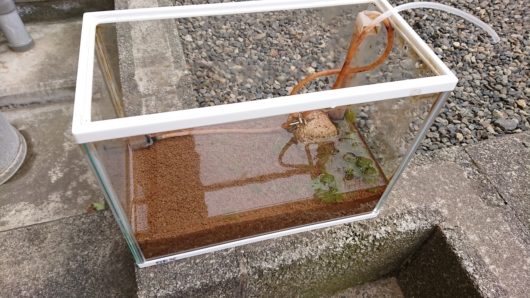 『楽アクア』に移した際、水はこの水槽の水をいれています。『水に慣れさせる』作業の省略です。