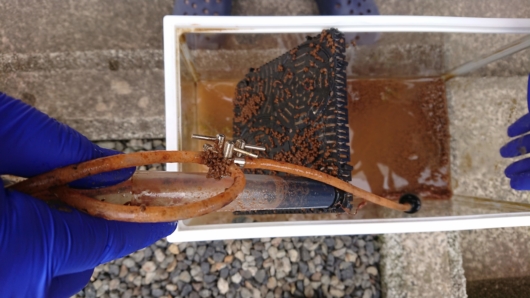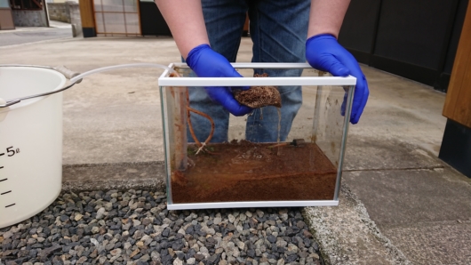 水槽は外での作業です。外はまだ寒いんですが、そこは諦めています。