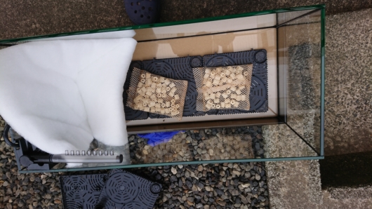 ウールのしたに濾過リングを仕込んで水を循環させます。