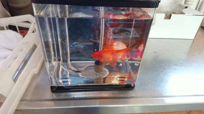 水合わせのつもりで、コップに少量の水槽の水を一時間に一回のペースで4回ほど『楽アクア』に足していきました。