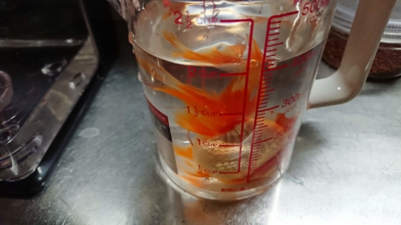 網での移動はなんかかわいそうなので、楽アクアから計量カップに移しました。