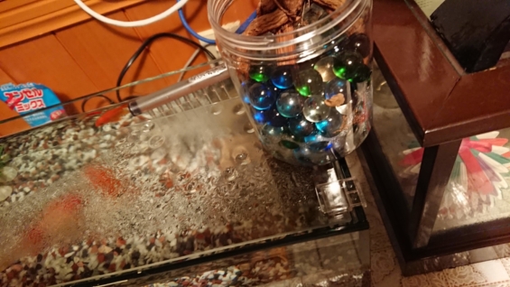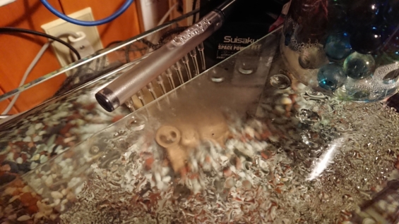 けっこう水滴が跳ねるので、水槽の天板にカビが生えないように注意が必要そうです。