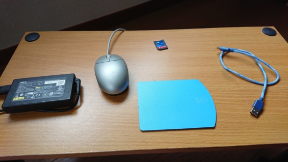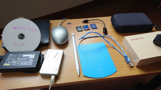 『外付けDVD』に『マウス』『充電器』『SDカードリーダー』『修復ディスク?』『マウスパッド』『USBケーブル』