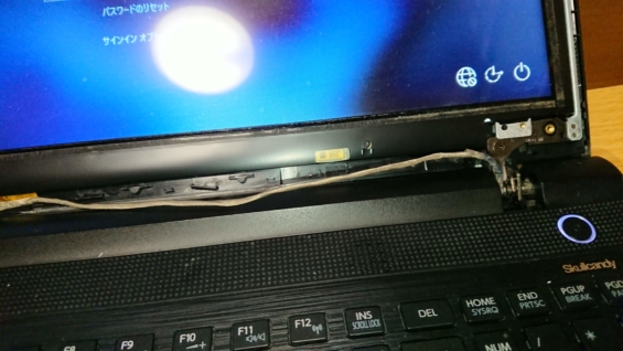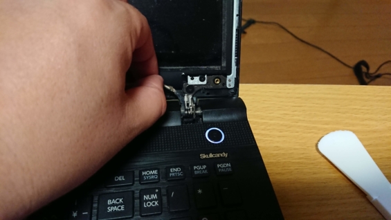 原因と思われるピンと張られている『液晶ケーブル』の緊張を緩めると
