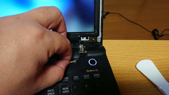 原因は『液晶ケーブル』で確定なので、ケーブルを外します。