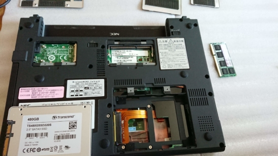 この機種は、本体裏とキーボード裏にRAMスロットがあるので、かなり面倒な部類です。