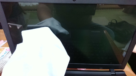 新PCでの作業が終わってから電源を切ると、液晶画面に『水垢』のような汚れが、、、