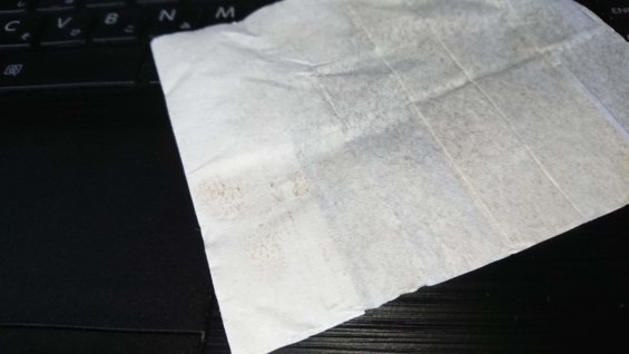 ウェットティッシュでも、一瞬きれいになるだけで乾くと浮き出てきます。