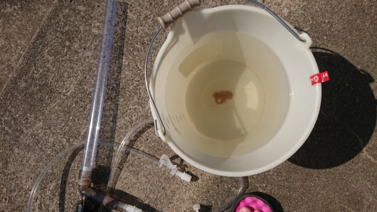 水槽に入れてシュポシュポしてから砂利をザクザクとどついてウンコを吸い出します。