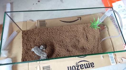 金魚を購入した次の日、水換えのいらない水槽を立ち上げようと頑張っているキャマダインです。