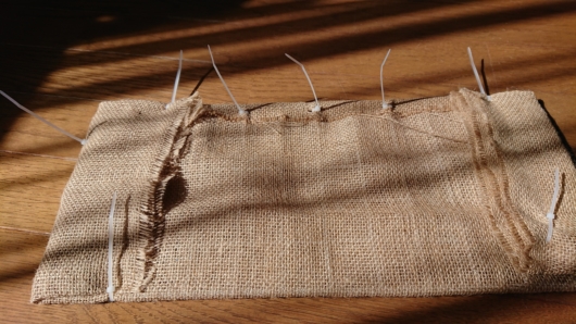 『麻の布』も切ろうかと思いましたが、ゴミが増えるから包み込む作戦でいきます。思いつきで始めたので行き当たりばったりです。