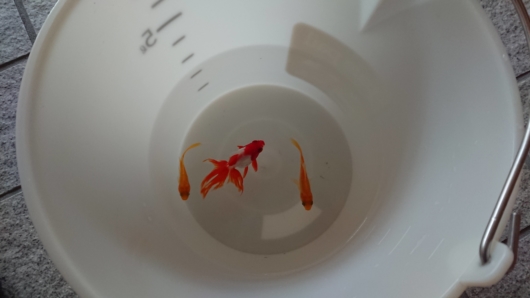 選び放題なので、『キャリコ琉金』2匹と琉金1匹購入してきました。