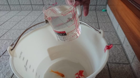 詳しくはわかりませんが、いままで住んでいた水槽の水に、新しい水槽の水を計量カップ一杯分ずつ、一時間おきに足していきます。