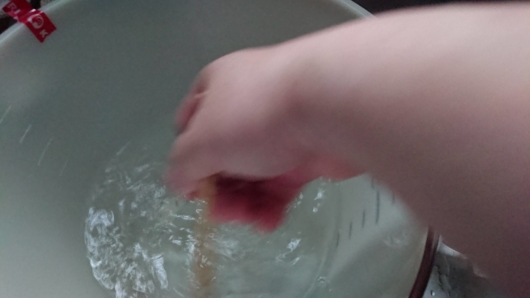 これをひとつまみいれ、塩が溶けるまですごくかき混ぜました。