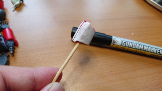 塗りたい部品を竹串に着けてガンダムマーカーを塗ってみました。